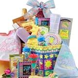 - The precious new baby will adore the soft receiving blanket, baby bottle, cotton bib and baby rattle; Mom will be pampered by the soothing lavender body lotion; Dad will truly appreciate the premium "New Baby" themed Coffee, "My First Cookies" shortbread sugar cookies decorated with tiny baby footprints. Mom and Dad will toast each other with Sparkling Apple Cider, and enjoy Cheddar Cheese Spread, Roasted Pistachios, Water Crackers, Chocolate Fudge and Cashew Nuts for a healthy snack.